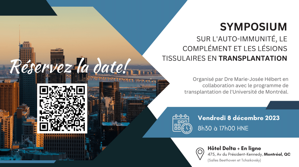 Séminaire de Transplantation et le Symposium de transplantation de l’Université de Montréal qui aura lieu le 8 décembre 2023.